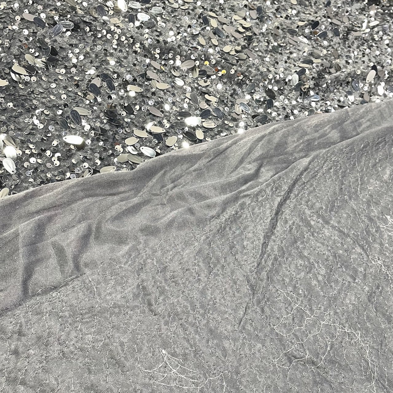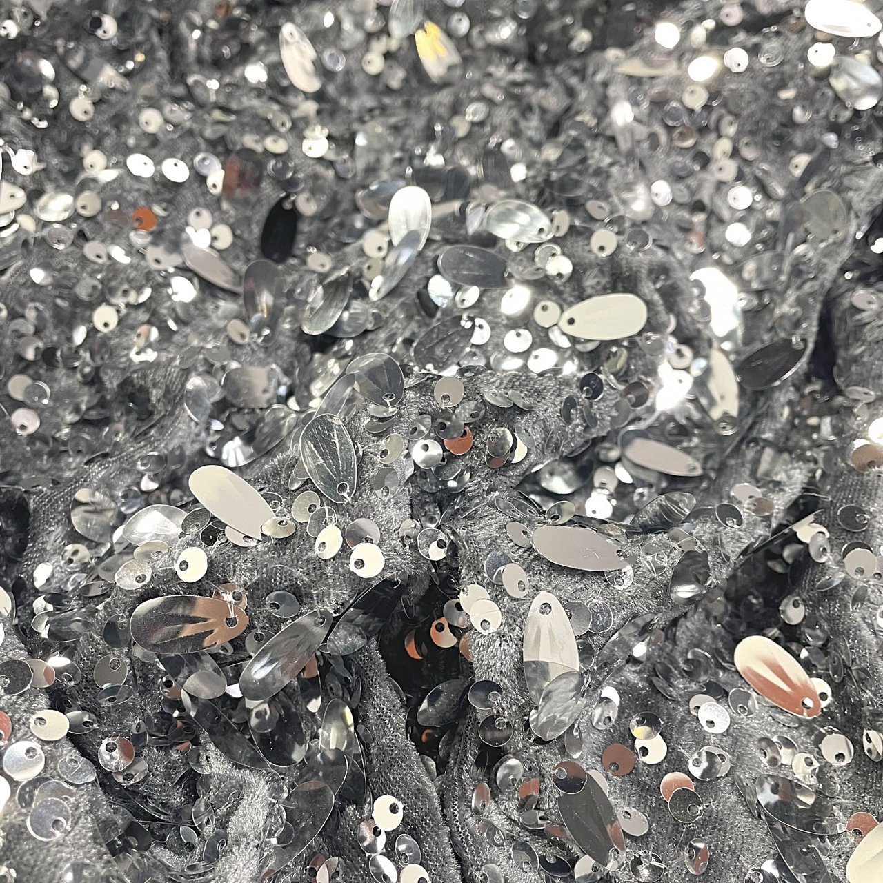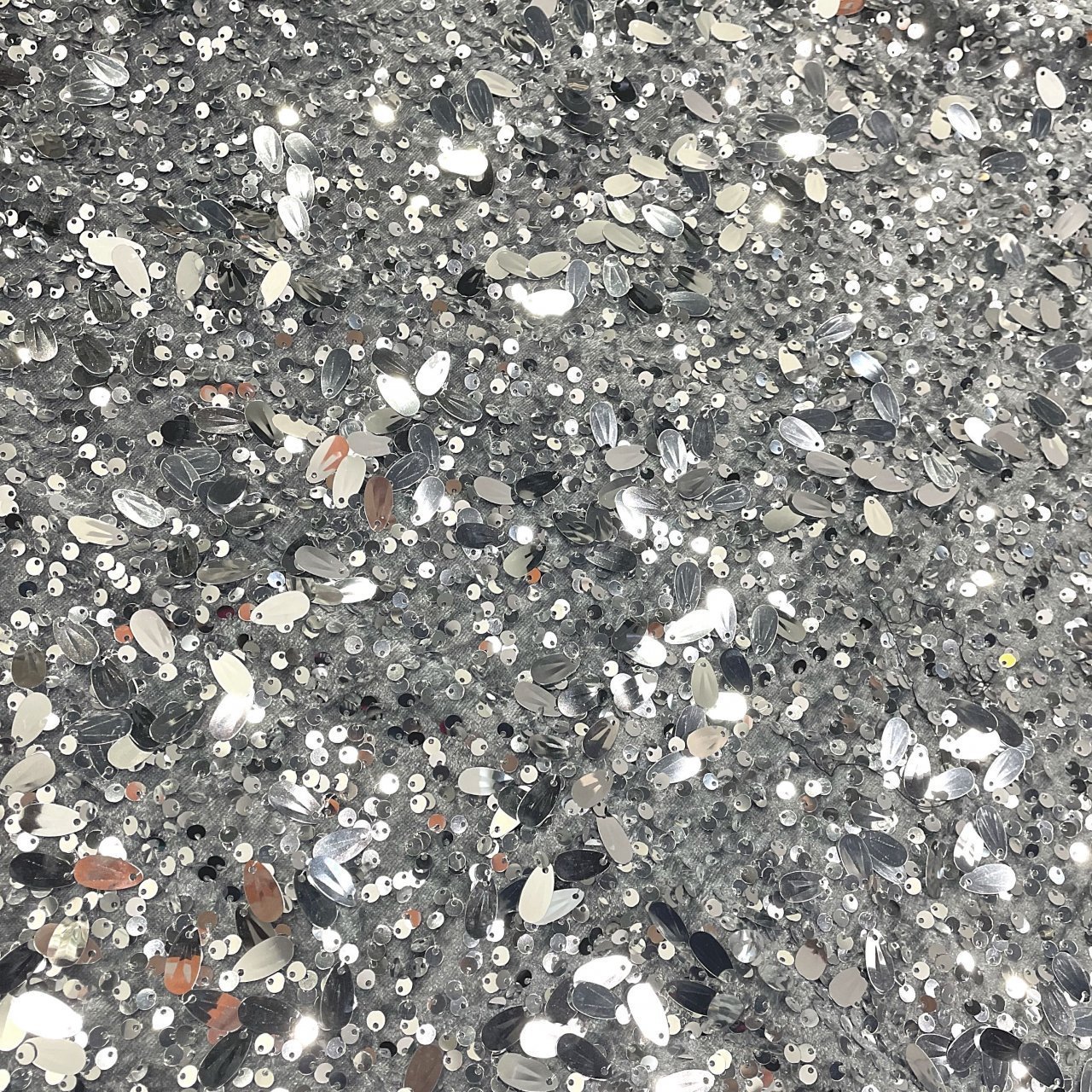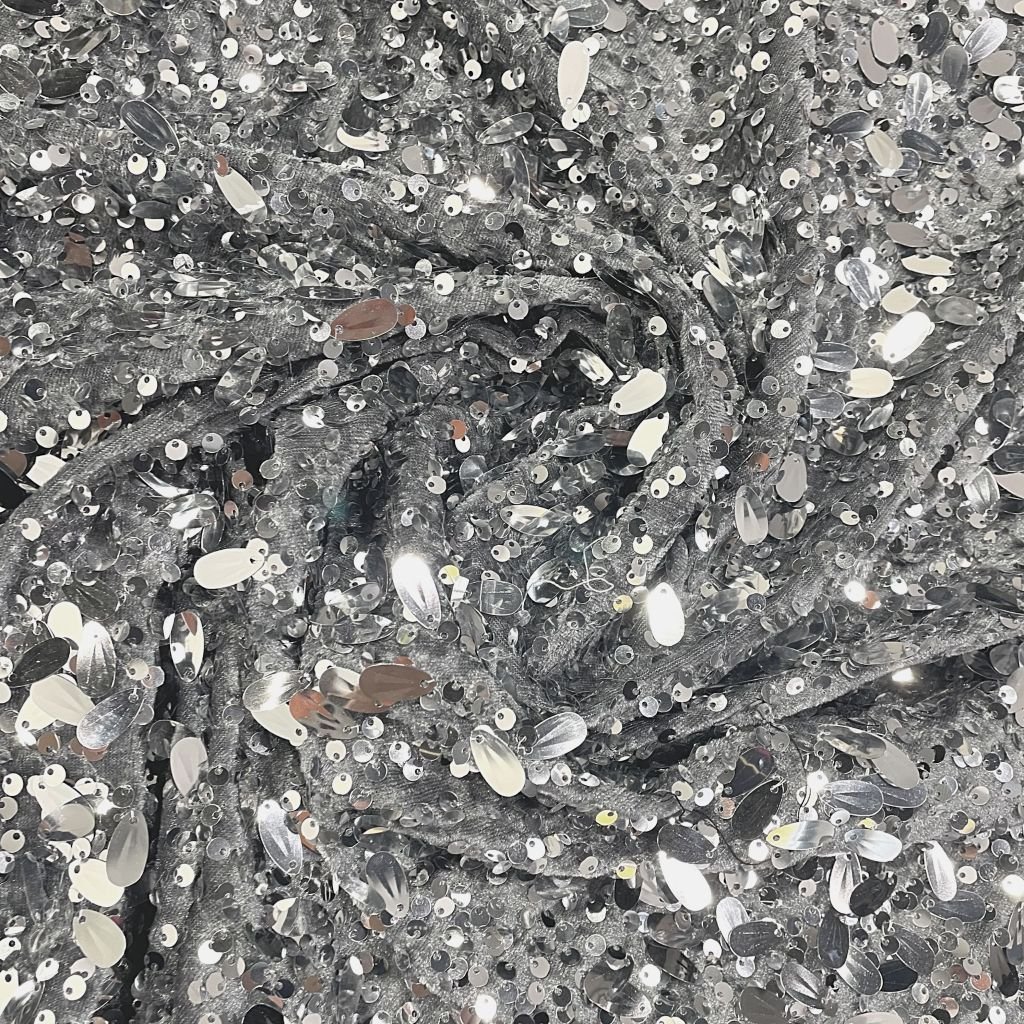 Пайетки на бархате серые\серебро с каплей
